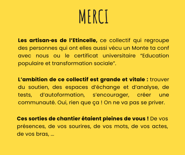 Categorized in: Conférences gesticulées, Sortie de chantier Tagged as: conférences gesticulées, éducation populaire, montetaconf, récit de vie, socio-analyse
