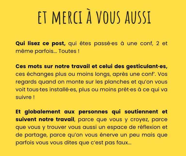 Toutes les conférences gesticulées sont dans le programme :